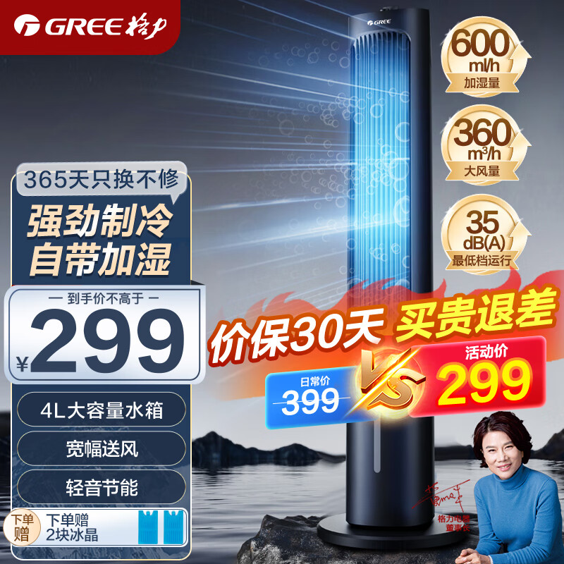 格力(GREE)【全能王】强劲制冷家用空调扇净化加湿水冷降温塔扇节能制冷小型无叶风扇落地冷风扇 KS-04X60g价格:359.00元!