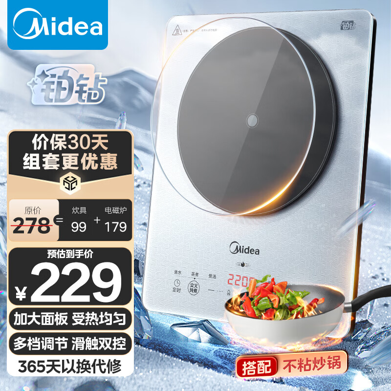 美的(Midea)铂钻系列 家用电磁炉 2200W大功率 电磁灶火锅炉 爆炒电磁炉 定时功能 MC-E22B20价格:229.00元!
