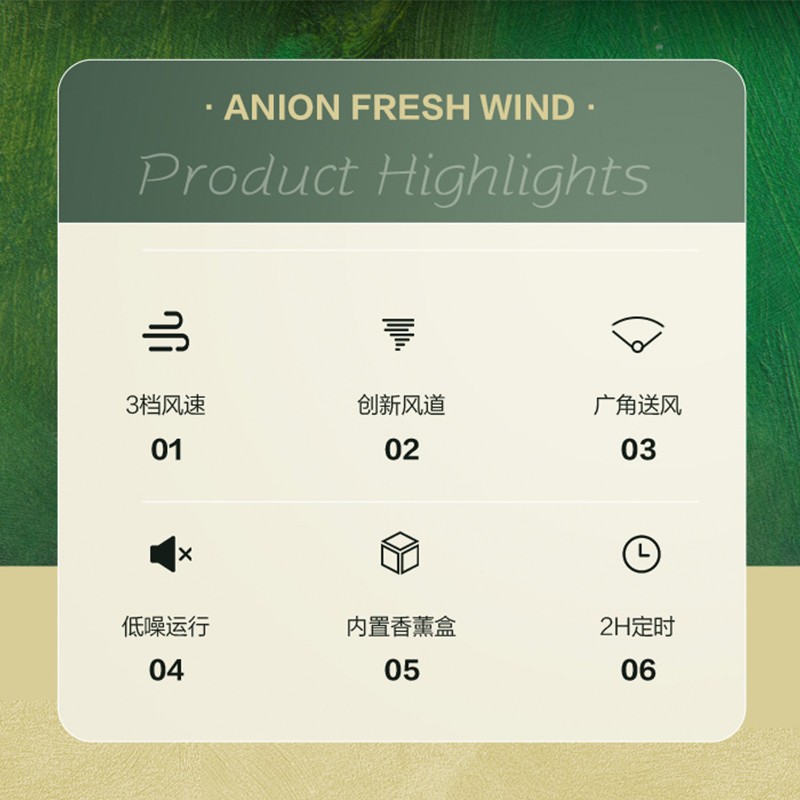 功能:模拟自然风,可拆洗,香薰/驱蚊