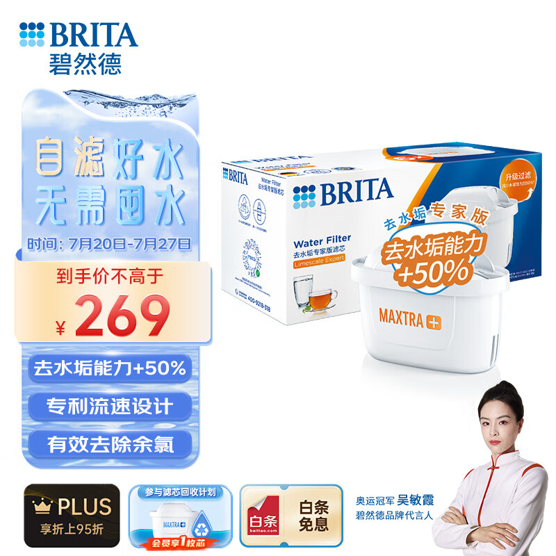 碧然德(BRITA)家用净水壶 滤水壶滤芯 MAXTRA+LE 去水垢专家滤芯 6枚装价格:269.00元!