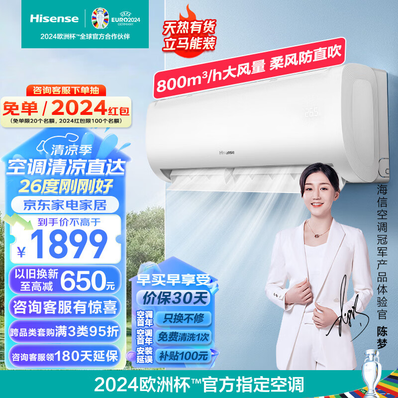 海信(Hisense)大1匹 速冷热 新一级能效 大风量速冷暖 APP智能变频防直吹壁挂式卧室空调挂机 KFR-26GW/E370-X1价格:1899.00元!