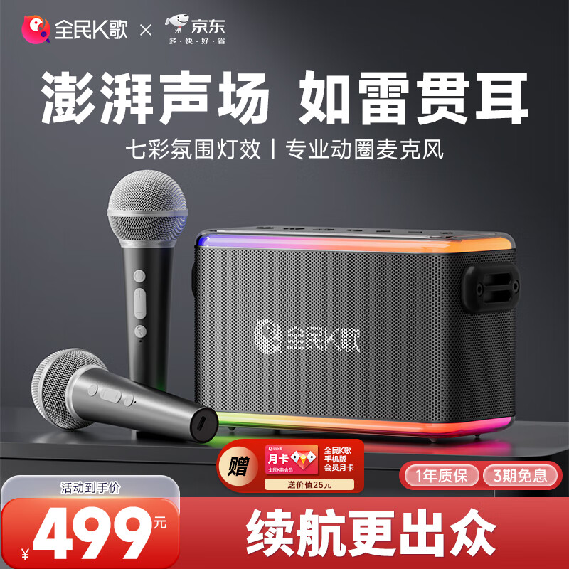 K歌K歌 便携式无线K歌音箱麦克风套装 超长续航按键方便家用KTV户外娱乐话筒音响一体V53黑色价格:499.00元!