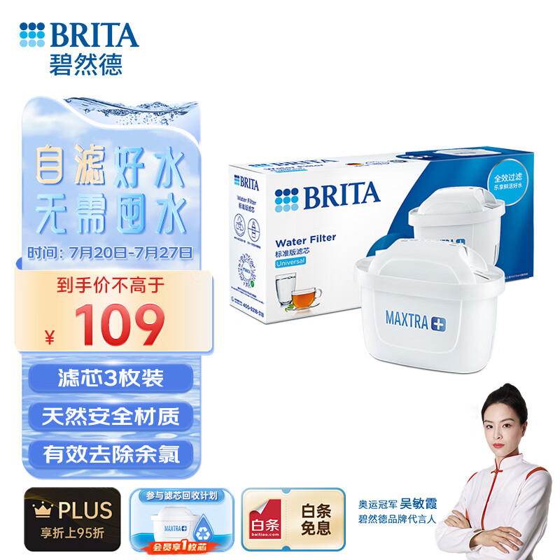 碧然德(BRITA) 家用滤水壶 净水壶滤芯 Maxtra 多效滤芯 3枚装价格:109.00元!