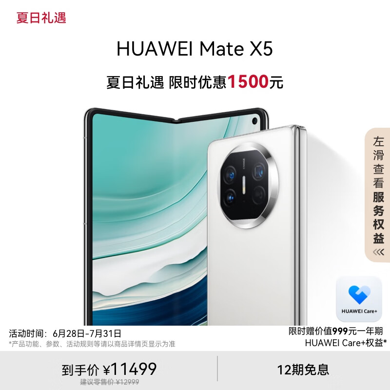 华为(HUAWEI)Mate X5 折叠屏手机 12GB+256GB 羽砂白价格:11499.00元!