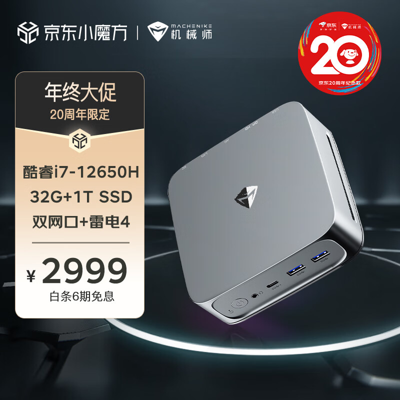 机械师(MACHENIKE)创物者Mini Intel高性能办公电脑台式迷你口袋主机(酷睿i7-12650H 32G 1TSSD WIFI6)价格:2999.00元!