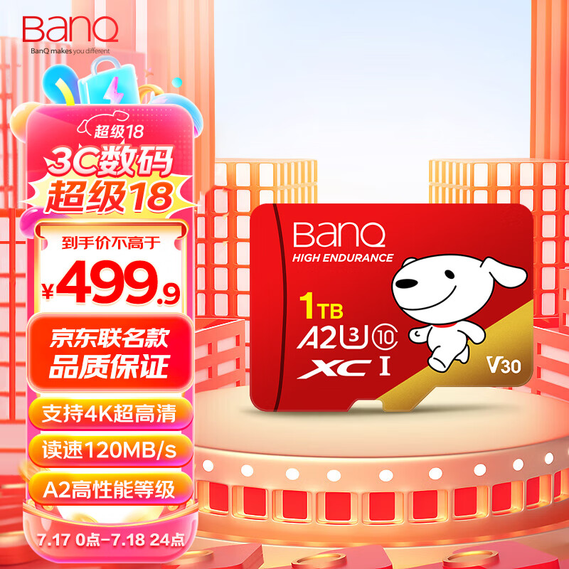 banq&JOY联名款 1TB TF(MicroSD)存储卡U3 C10 A2 V30 4K高速行车记录仪&监控游戏机无人机内存卡价格:499.90元!