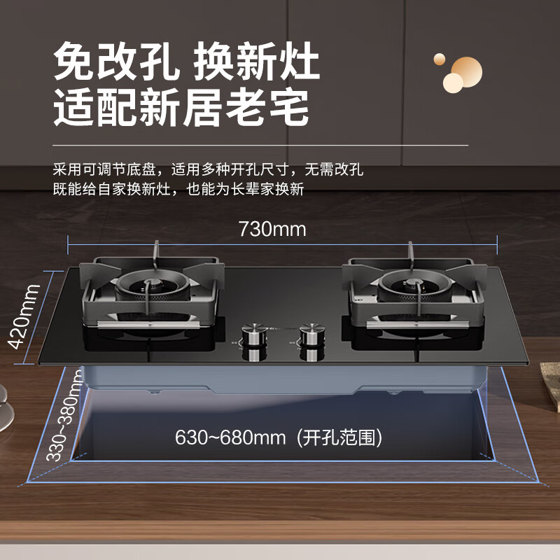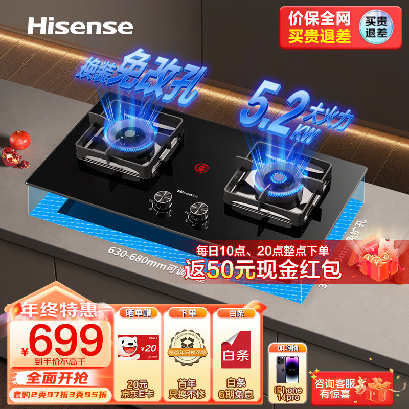 海信(Hisense)天然气燃气灶 家用嵌入式双灶家用打火灶具 5.2kW底座可调节燃气灶天然气以旧换新 JZT-DB32价格:799.00元!