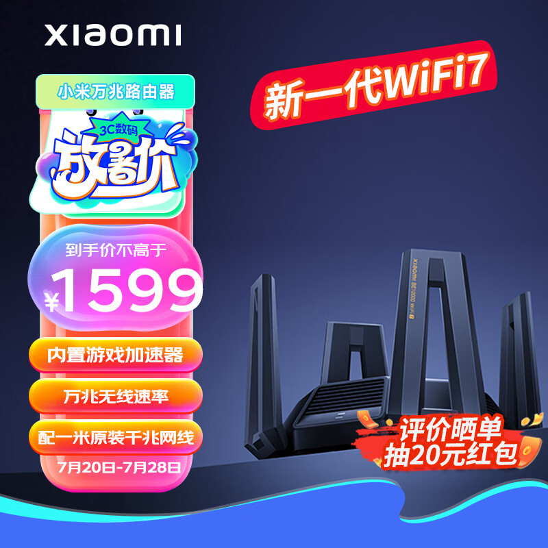 小米(MI)Xiaomi万兆路由器 WiFi7 万兆无线速率路由器 独立三频段 Mesh组网 性能旗舰路由价格:1599.00元!