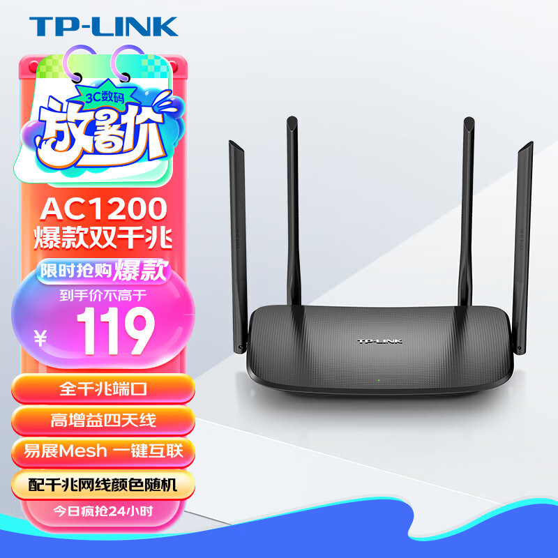 TP-link双千兆路由器 易展mesh分布式 AC1200无线家用穿墙 5G双频 WDR5620千兆易展版 配千兆网线 IPv6价格:119.90元!