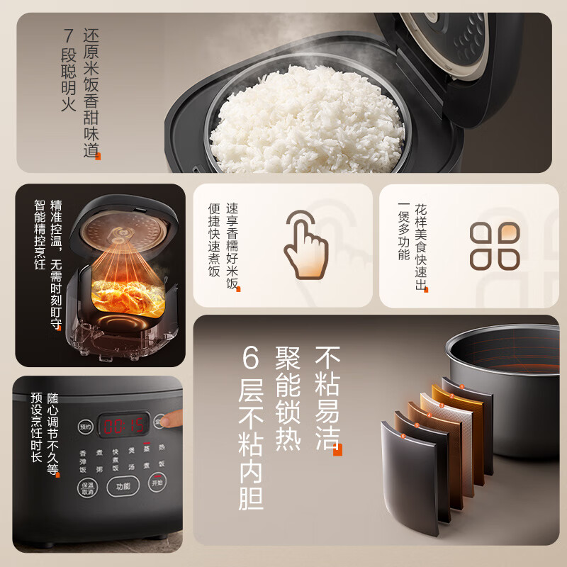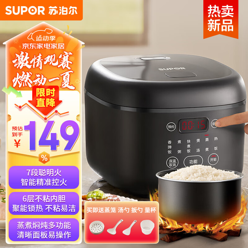 苏泊尔(SUPOR)小型电饭煲电饭锅3升2-6人前置大屏面板24小时预约多功能家用智能电饭煲SF30FC0063价格:149.00元!