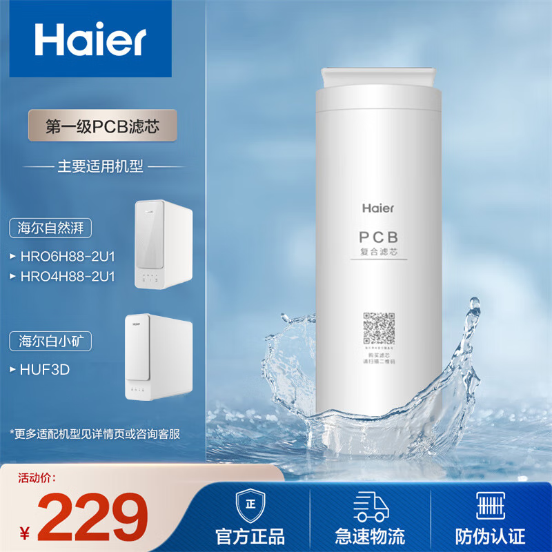 海尔(Haier)净水器滤芯HRO4H88-2U1/6H88-2U1/HUF3D 级PCB复合滤芯 适用超滤净水器价格:229.00元!