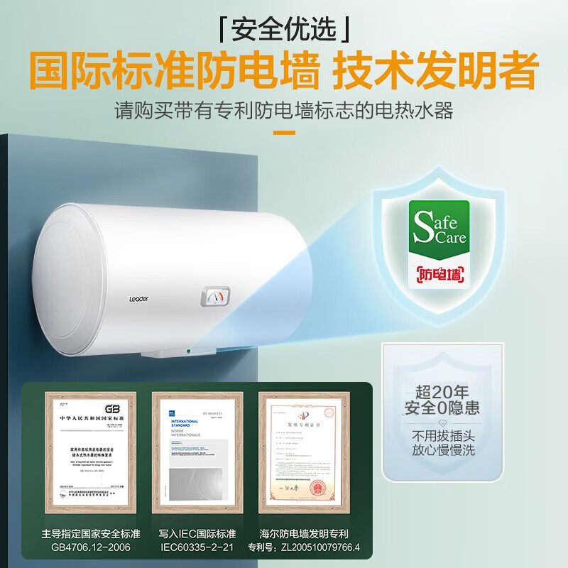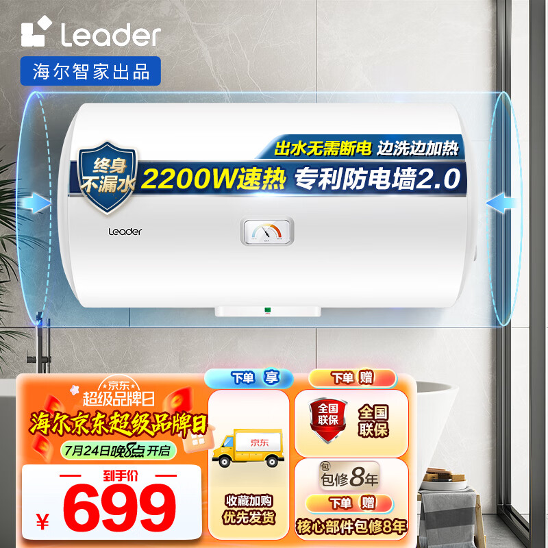 海尔智家出品Leader 80升电热水器家用储水式速热大容量 节能保温专利防电墙洗浴 LEC8001-20X1价格:699.00元!