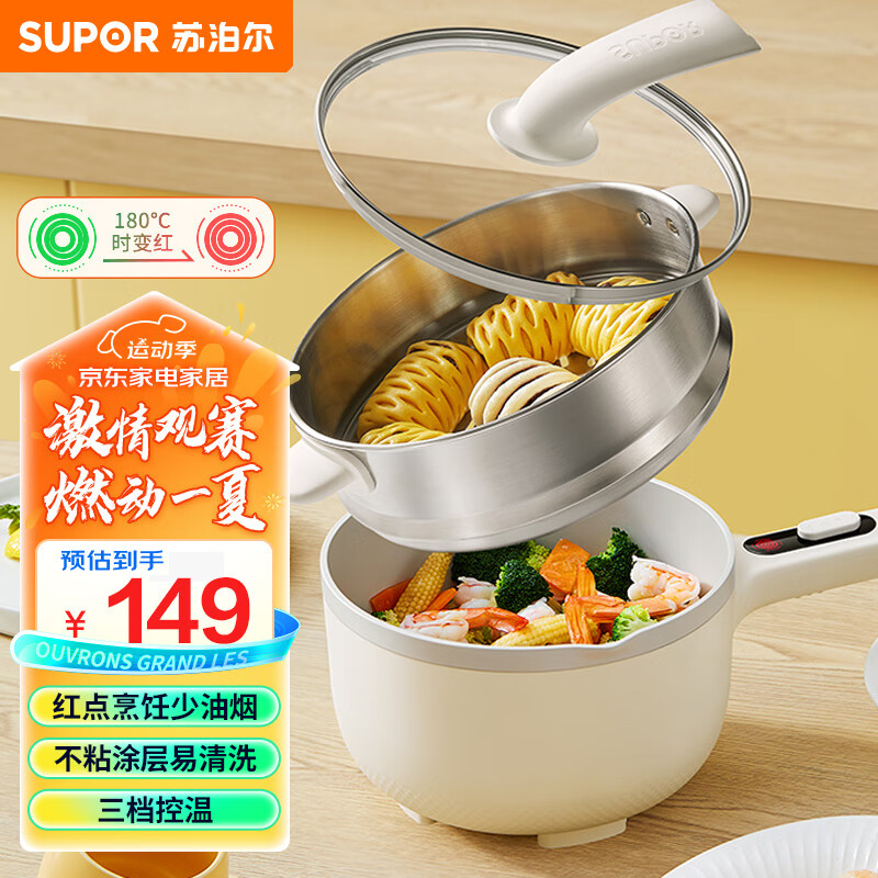 苏泊尔(SUPOR)电炒锅 电煮锅 电蒸锅 电火锅 小电锅 宿舍小锅电热锅学生宿舍泡面多功能2L多用途锅CJ20A820价格:149.00元!