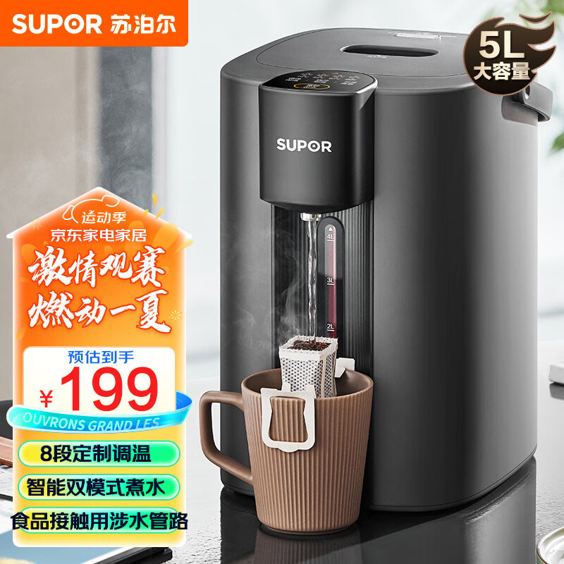 苏泊尔(SUPOR) 电热水瓶热水壶 5L大容量电水瓶八段智能保温恒温304不锈钢 家用电水壶烧水壶 SW-50T507价格:199.00元!