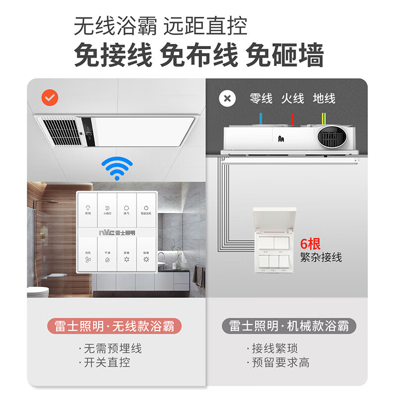4、商品质量很好,和集成吊顶完全匹配,都不需要安装师傅安装,自己拆一下吊顶就可以了,暖气风很大,质量杠杠的,推荐购买雷士品牌