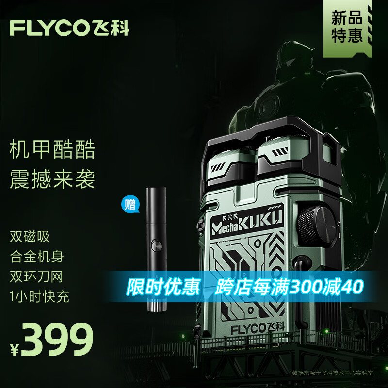 飞科(FLYCO)机甲酷酷男士电动刮胡剃须刀小巧便携迷你生日七夕情人节日礼物送男友送老公送父亲F001-炫酷绿价格:499.00元!