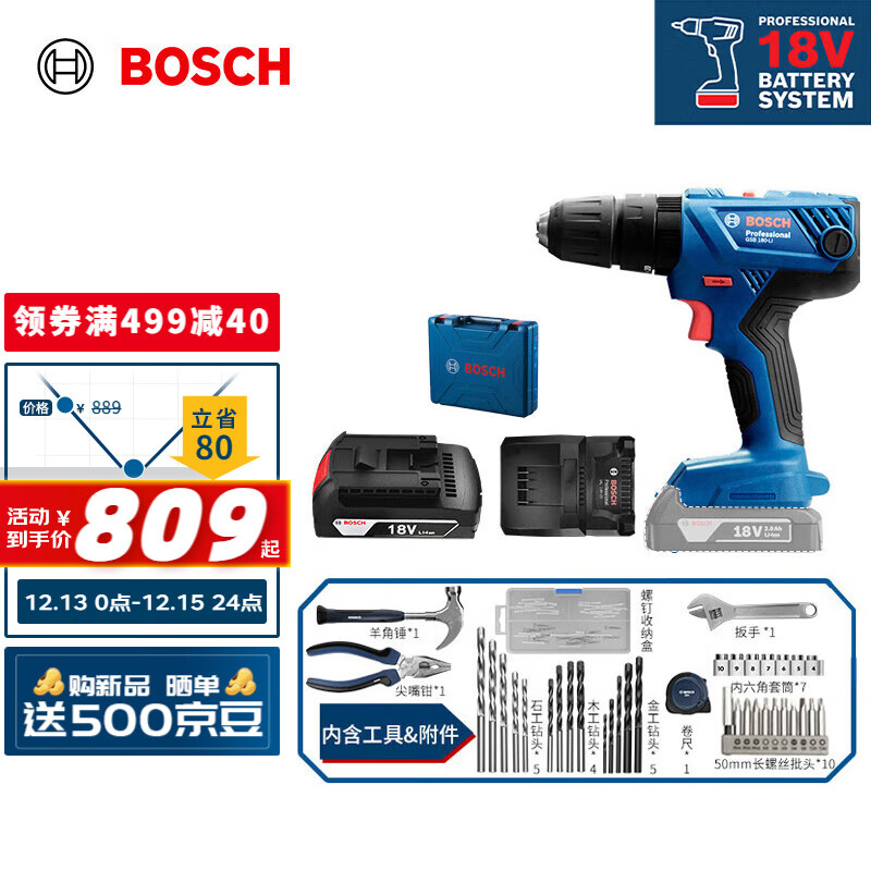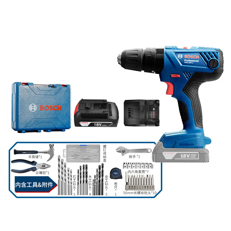 博世(BOSCH)GSB 180-LI 18V充电式电动螺丝刀锂电冲击钻工具箱含附件手动工具价格:889.00元!