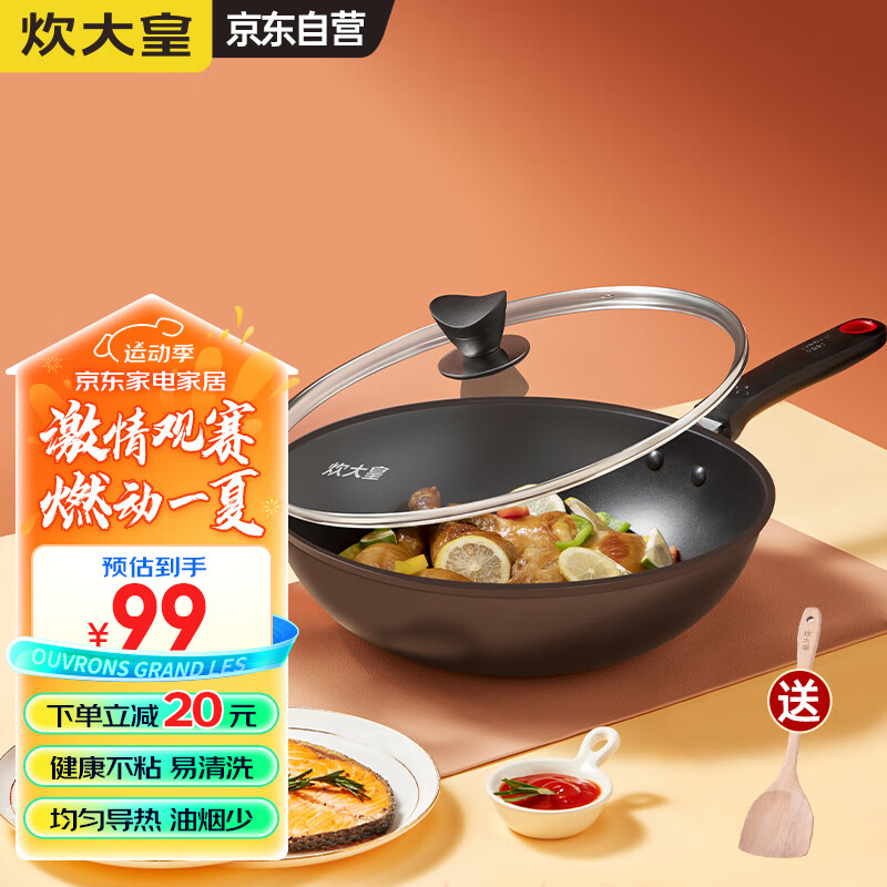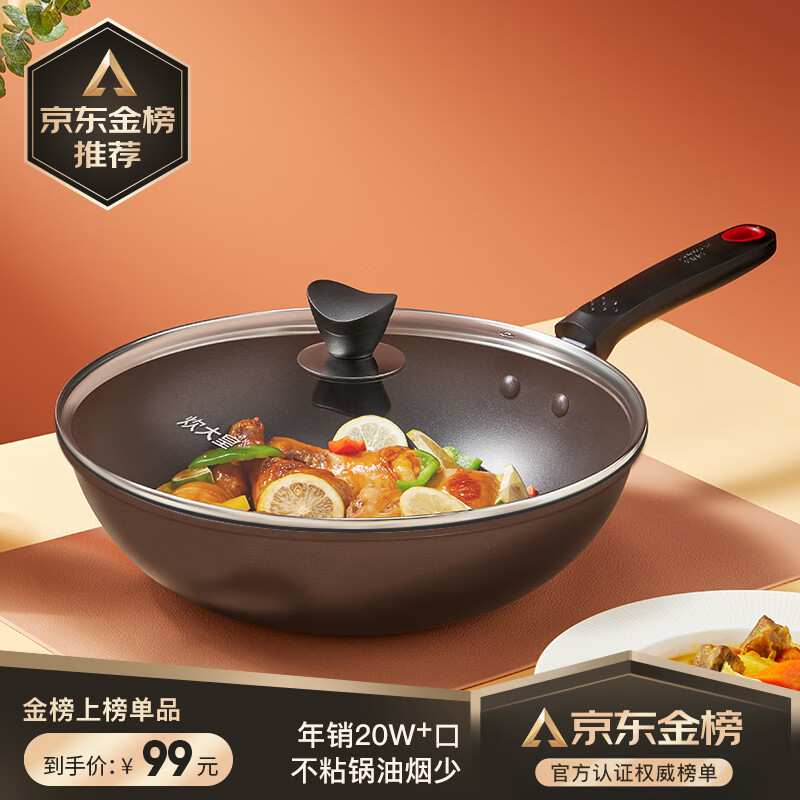 炊大皇(COOKER KING)绮丽32cm炒锅 易洁平底不粘锅 电磁炉通用炒菜锅煎锅 B50069价格:119.00元!
