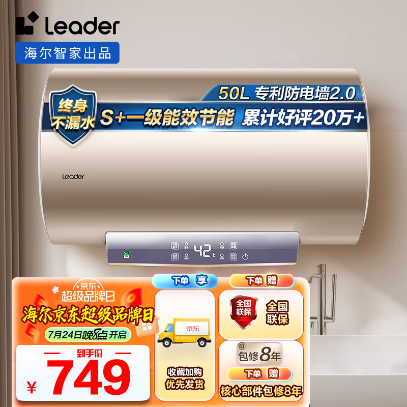 海尔智家出品 Leader电热水器50升 2200W 一级能效家用储水式节能 LEC5001-LD5金价格:749.00元!