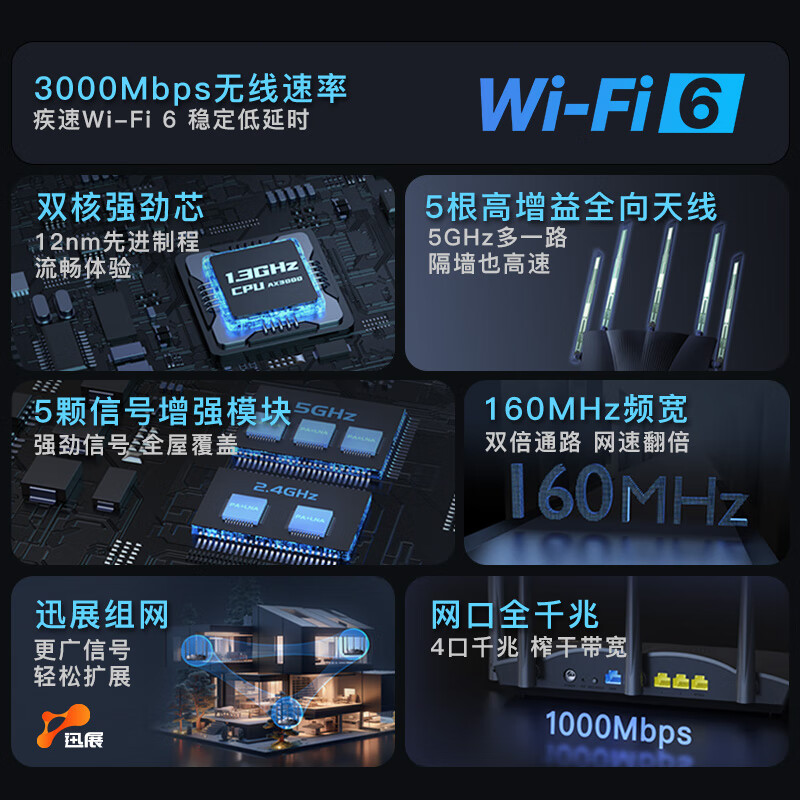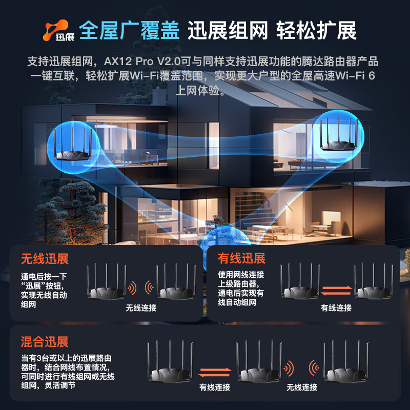 Tenda腾达AX12 Pro AX3000满血WiFi6千兆无线路由器 3000M无线速率 5G双频 家用游戏智能路由 Mesh组网价格:198.00元!