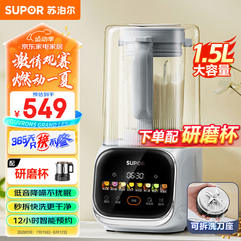 苏泊尔(SUPOR)低音降噪破壁机 1.5L大容量家用豆浆机可拆洗榨汁机 全自动加热早餐机辅食机 SPJ617R价格:549.00元!