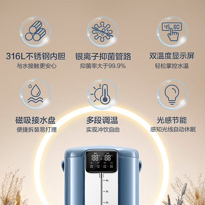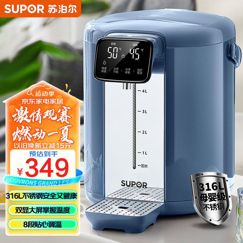苏泊尔(SUPOR)苏泊尔(SUPOR)电热水瓶 双层电热水壶烧水壶 5L大容量316L不锈钢电水瓶 多段保温恒温 SW-50T103价格:349.00元!