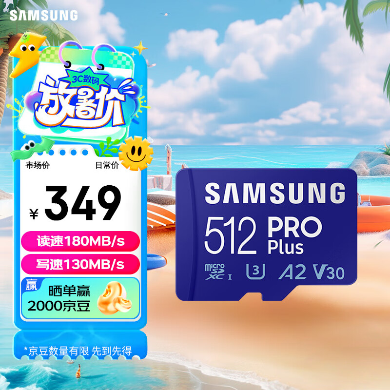 三星(SAMSUNG)512GB TF(MicroSD)存储卡PRO U3 A2 V30 兼容行车记录仪无人机运动相机 读速180MB/s写速130MB/s价格:349.00元!