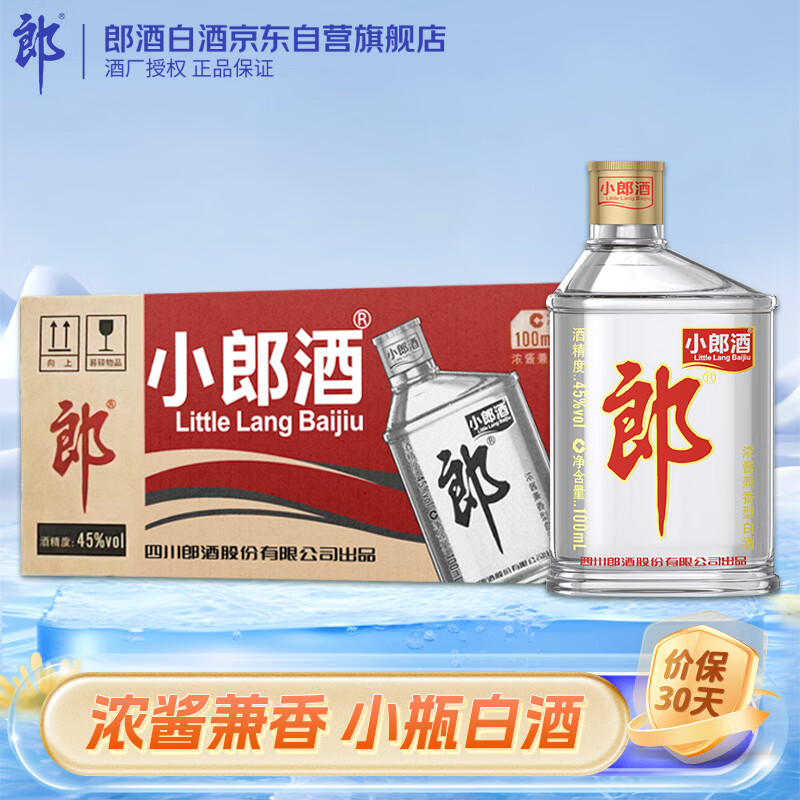 郎酒 小郎酒经典款 浓酱兼香型白酒 45度100ml*24瓶 整箱装价格:455.00元!