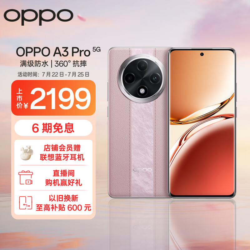 OPPO A3 Pro 5G 耐用战神 满级防水 360°抗摔 四年耐用大电池 12GB+256GB 云锦粉 超抗摔护眼屏AI手机价格:2199.00元!