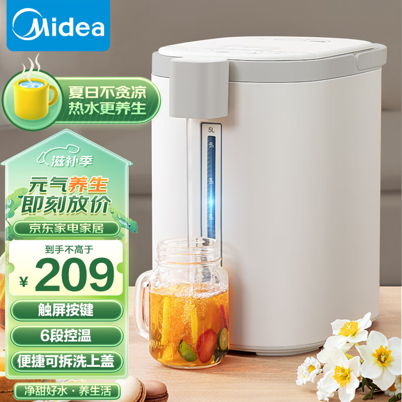美的(Midea)电热水瓶热水壶电水壶304不锈钢净甜5L多段智温控自动断电电热水壶双层防烫开水壶烧水壶50E502价格:209.00元!
