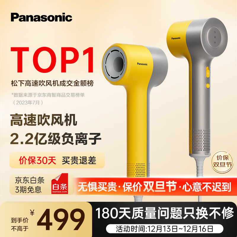 松下(Panasonic)缤纷筒高速吹风机 低噪音大风力吹头发负离子电吹风速干护发家用大功率吹风筒NE7H毕加索黄价格:499.00元!