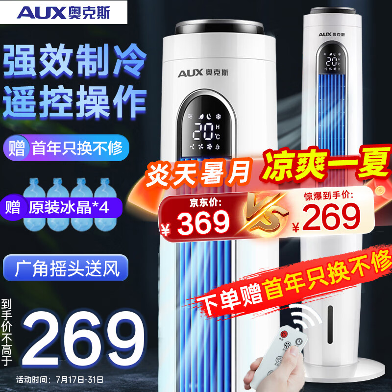 奥克斯(AUX)风扇空调扇制冷/冷风机家用冷风扇/小空调制冷风扇落地/制冷机无叶风扇塔扇冷气扇FT-TS45CR价格:329.00元!