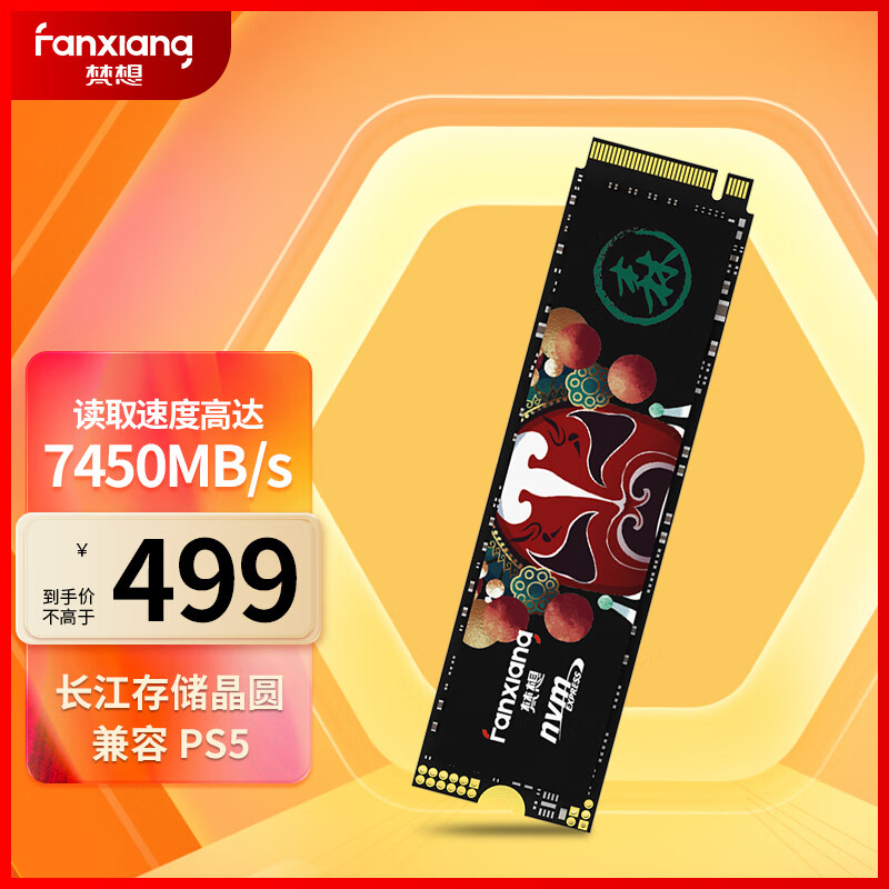 梵想(FANXIANG)1TB SSD固态硬盘 M.2接口NVMe协议PCIe 4.0x4 长江存储晶圆 台式机笔记本电脑PS5游戏扩展盘 S790价格:499.00元!