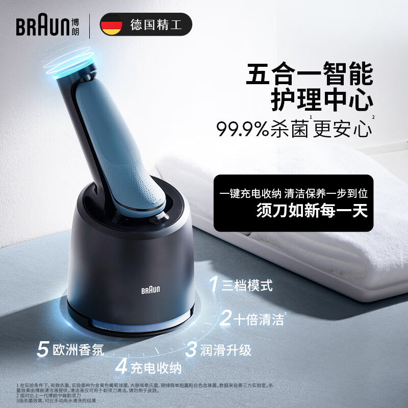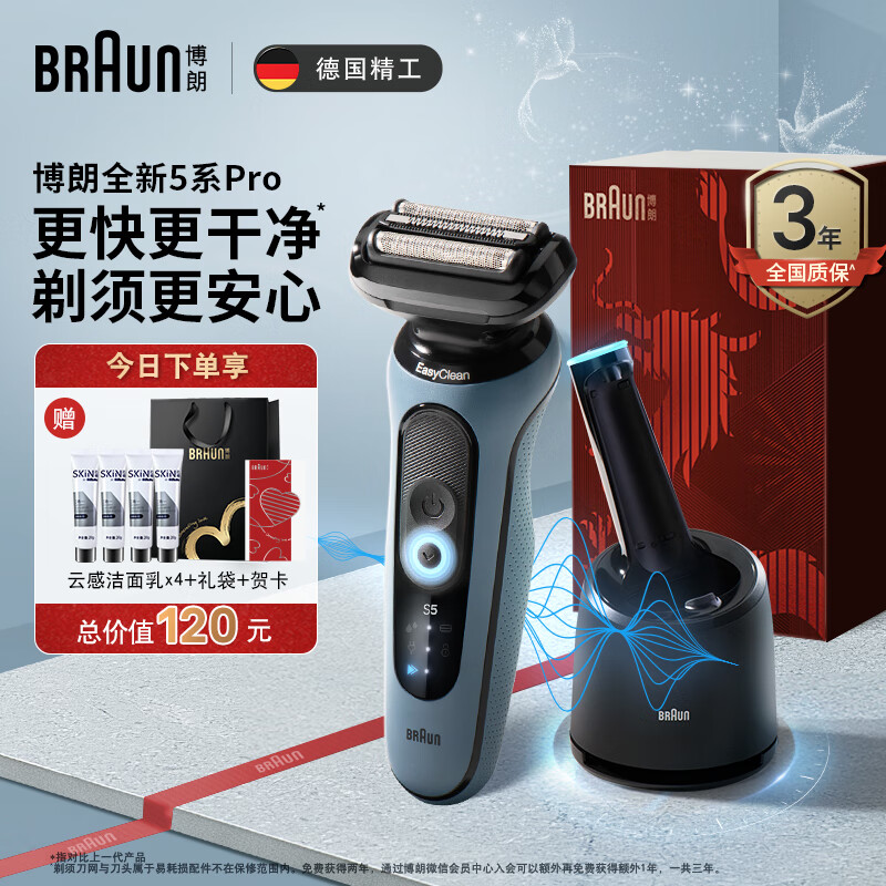博朗(BRAUN)雷霆5系Pro远空蓝升级版清洁护理中心电动剃须刀往复式刮胡刀送男朋友生日礼物七夕情人节礼物价格:699.00元!