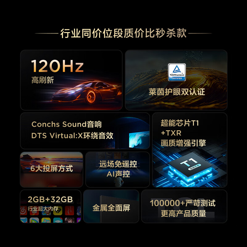 TCL电视 55V8E 55英寸 120Hz MEMC防抖 2+32GB 4K超高清 客厅家用液晶智能平板电视机 小电视价格:1599.00元!