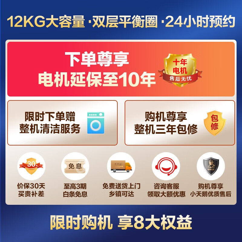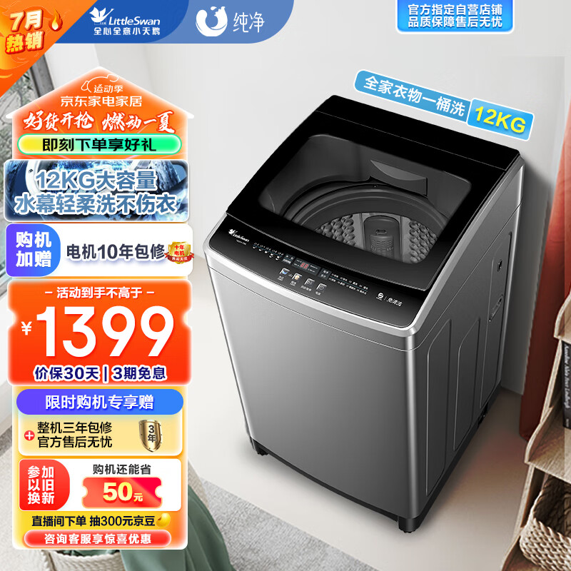 小天鹅(LittleSwan)12公斤大容量波轮洗衣机全自动 全新免清洗 双层平衡桶 钢化玻璃门盖价格:1399.00元!