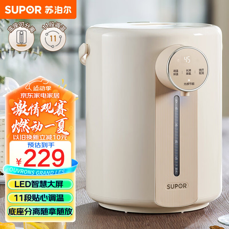 苏泊尔(SUPOR)电热水瓶 除氯电热水壶烧水壶 5L大容量304不锈钢电水瓶 多段保温恒温电水壶 SW-50T109价格:229.00元!