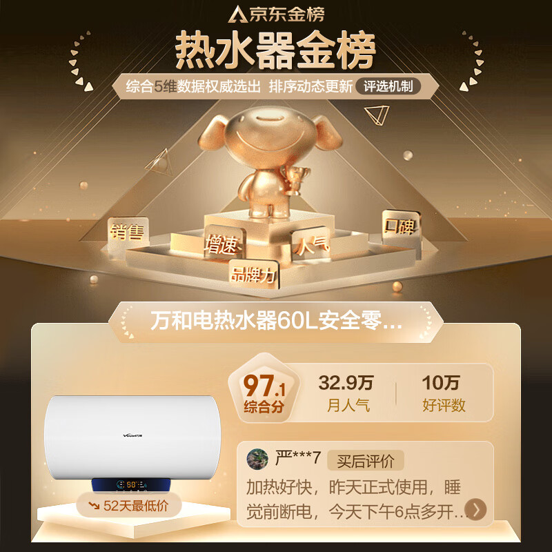 万和(Vanward)60升电热水器一级能效智能断电家用储水式速热高温杀菌E60-Q2WY10-20 以旧换新价格:1198.00元!