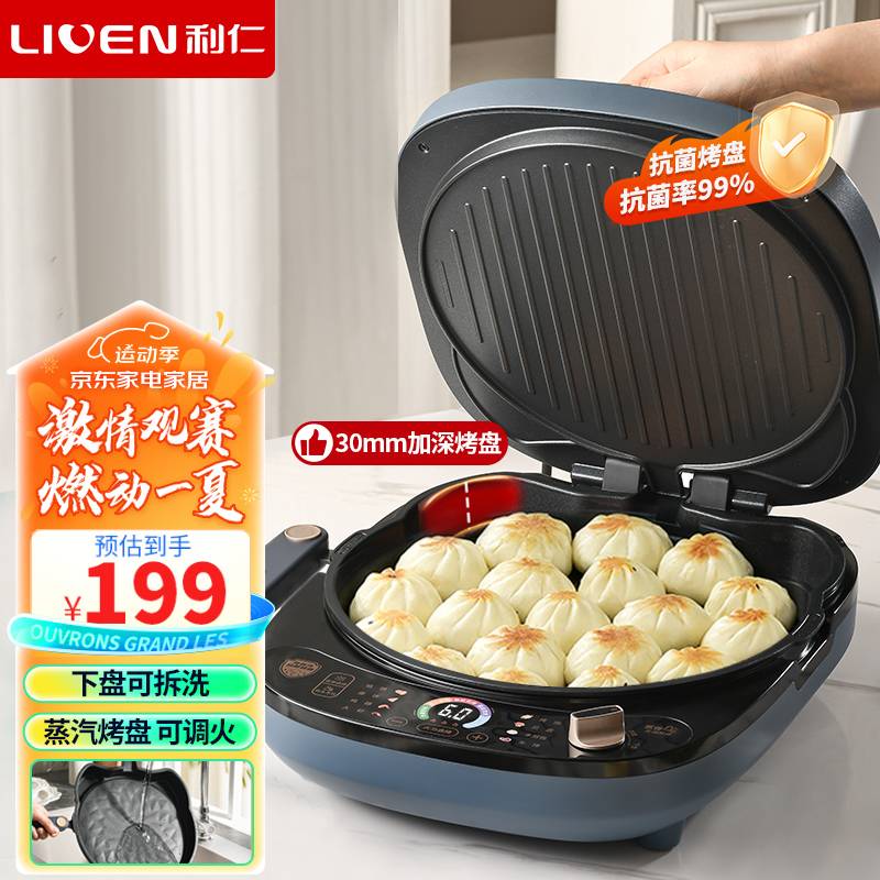 利仁(Liven)电饼铛家用可拆洗30mm加深蒸汽烤盘双面煎烤智能煎饼锅烙饼锅大号三明治早餐机烤肉锅 LR-D3088S价格:219.00元!