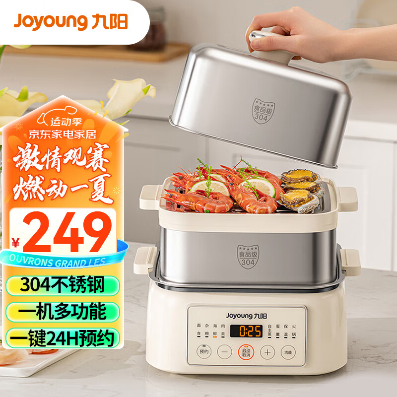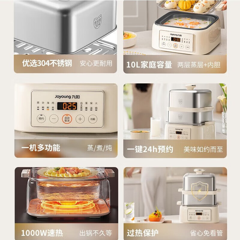 九阳(Joyoung)10L大容量电蒸锅电煮锅电火锅多用途锅家用多功能智能电蒸锅蒸包子锅两层大容量GZ975价格:249.00元!