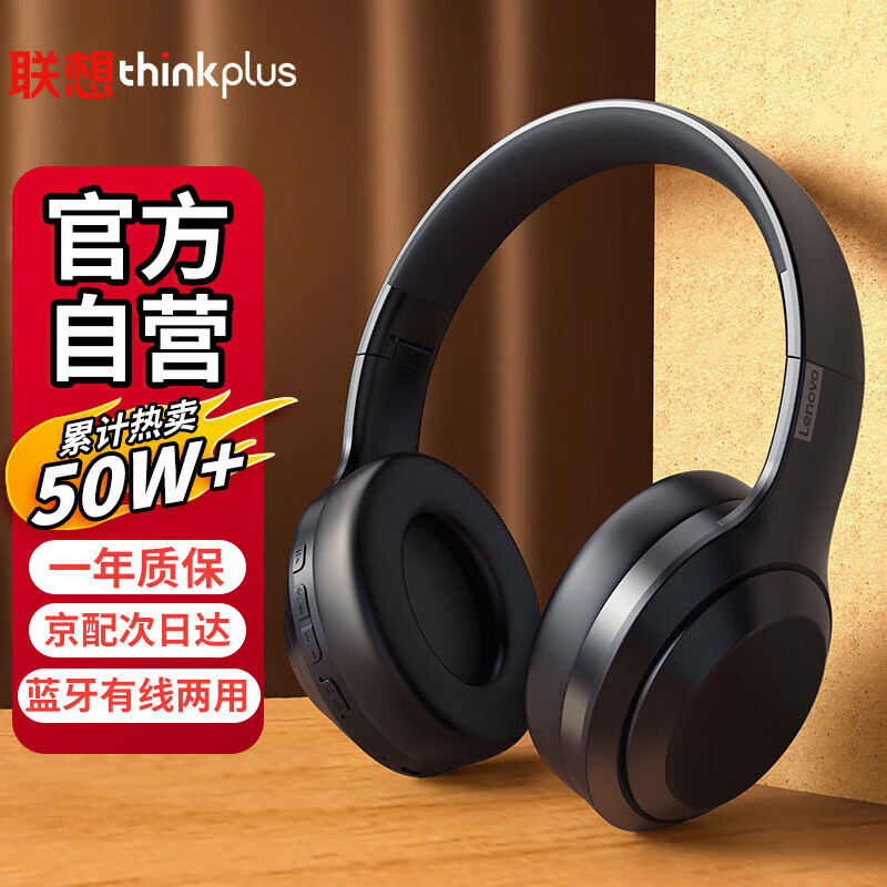 联想(Lenovo)头戴式无线蓝牙耳机电竞游戏音乐运动降噪电脑网课耳麦耳机 通用苹果华为小米 thinkplus th10黑色价格:129.00元!