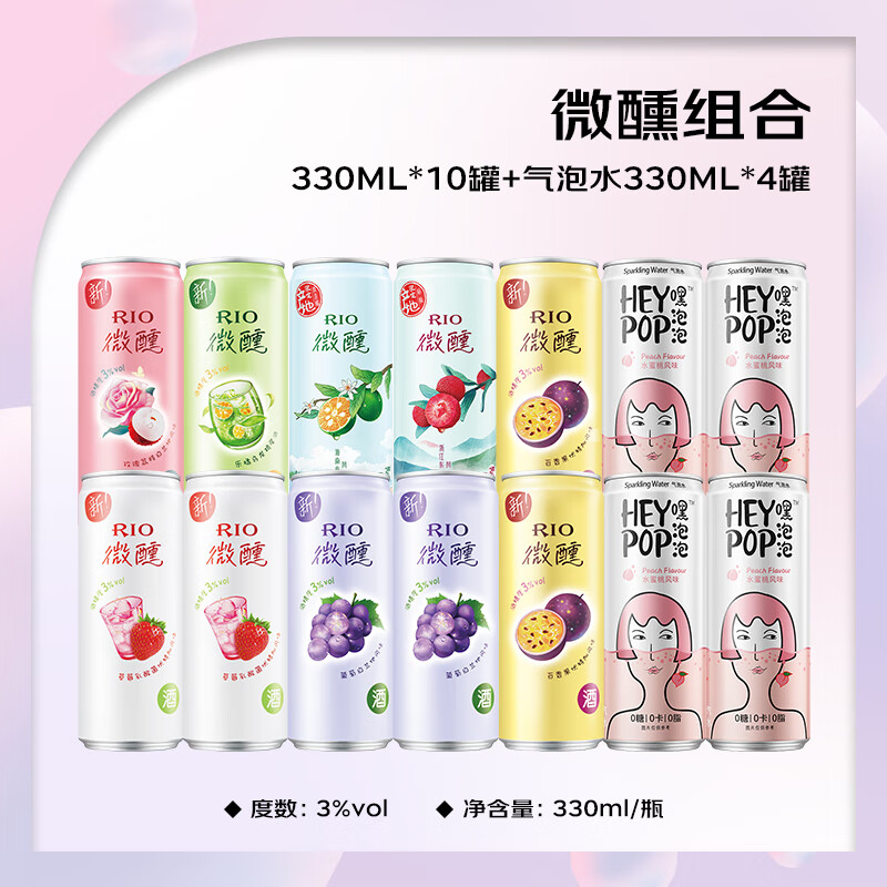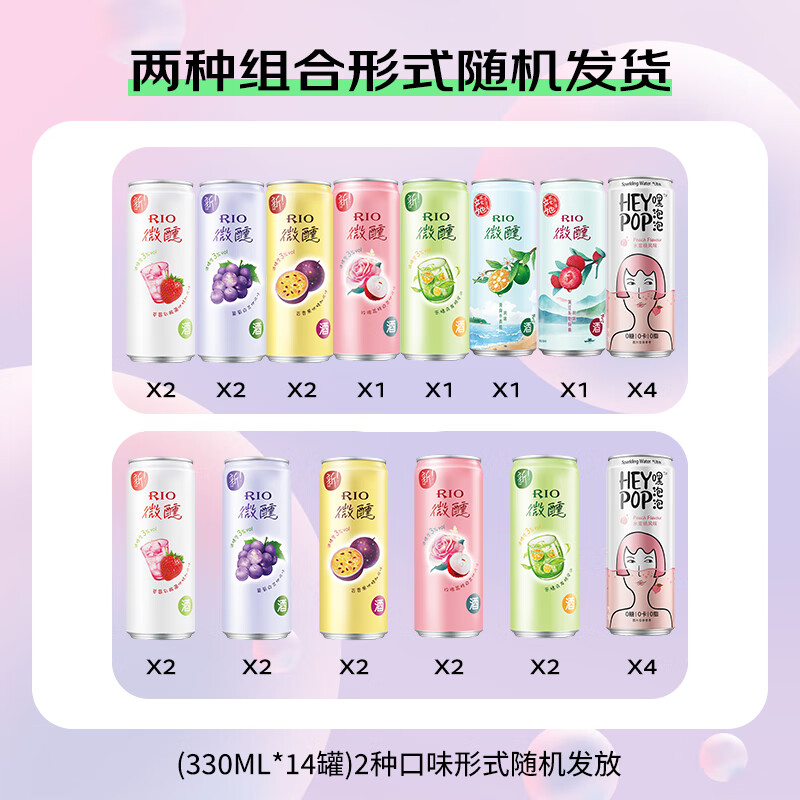 锐澳(RIO)洋酒 预调 鸡尾酒 果酒 微醺 330ml*10罐+气泡水*4罐(随机发货)价格:68.50元!