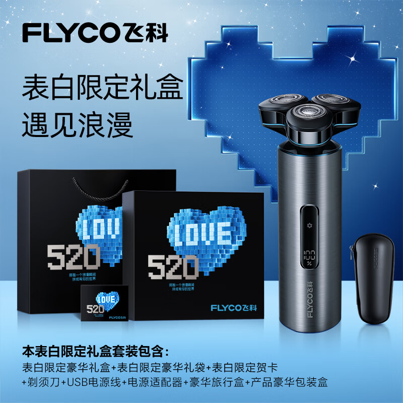 飞科(FLYCO)男士电动剃须刀FS988刮胡须刀须刨干湿双剃生日情人节日礼物送男友送老公送父亲-表白限定礼盒价格:659.00元!