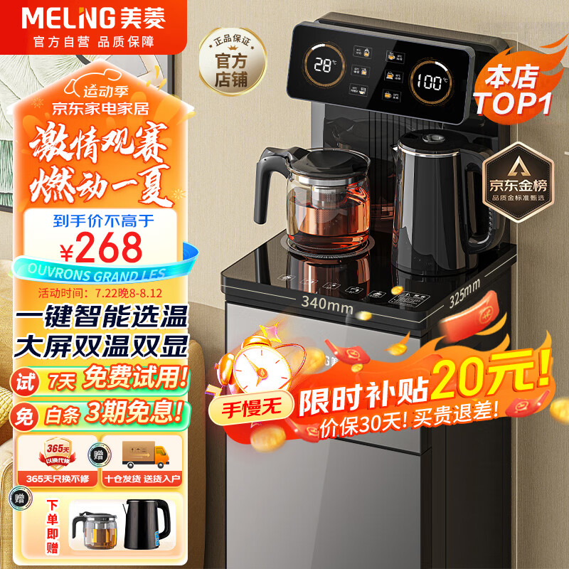 美菱(MeiLing)茶吧机 家用饮水机遥控智能【双温双显双出水口】下置水桶全自动自主控温立式泡茶机MY-C919价格:288.00元!