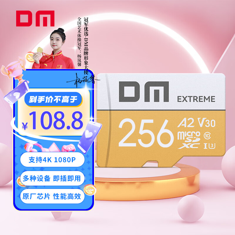 DM大迈 256GB TF(MicroSD)存储卡 金卡 A2 V30游戏手机行车记录仪监控摄像头多设备兼容高速内存卡价格:118.80元!