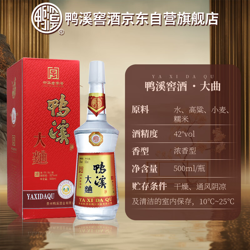 鸭溪窖 大曲 浓香型白酒 42度 500ml*6瓶 整箱装价格:342.00元!