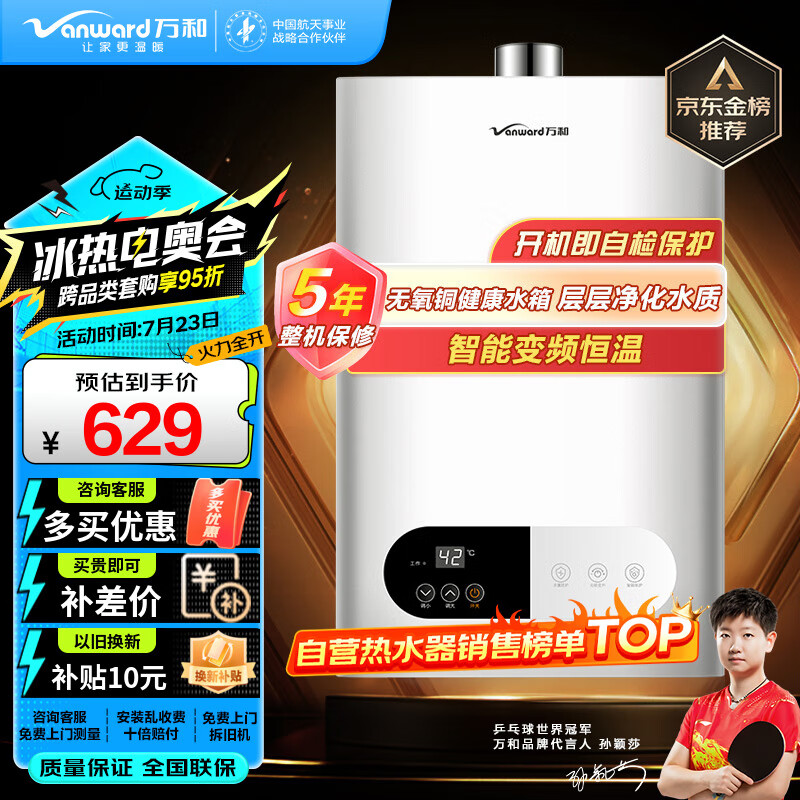 万和(Vanward)12升燃气热水器 天然气家用 双重防冻 智能变频恒温【行业热销】无级变升 JSQ24-220J12 以旧换新价格:619.00元!