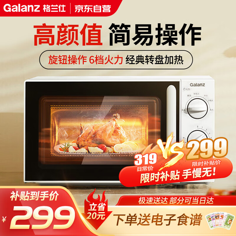 格兰仕微波炉家用小型快捷微波炉 360°转盘快捷加热旋钮操控易清洁内胆d4升级版SE(W0)价格:319.00元!
