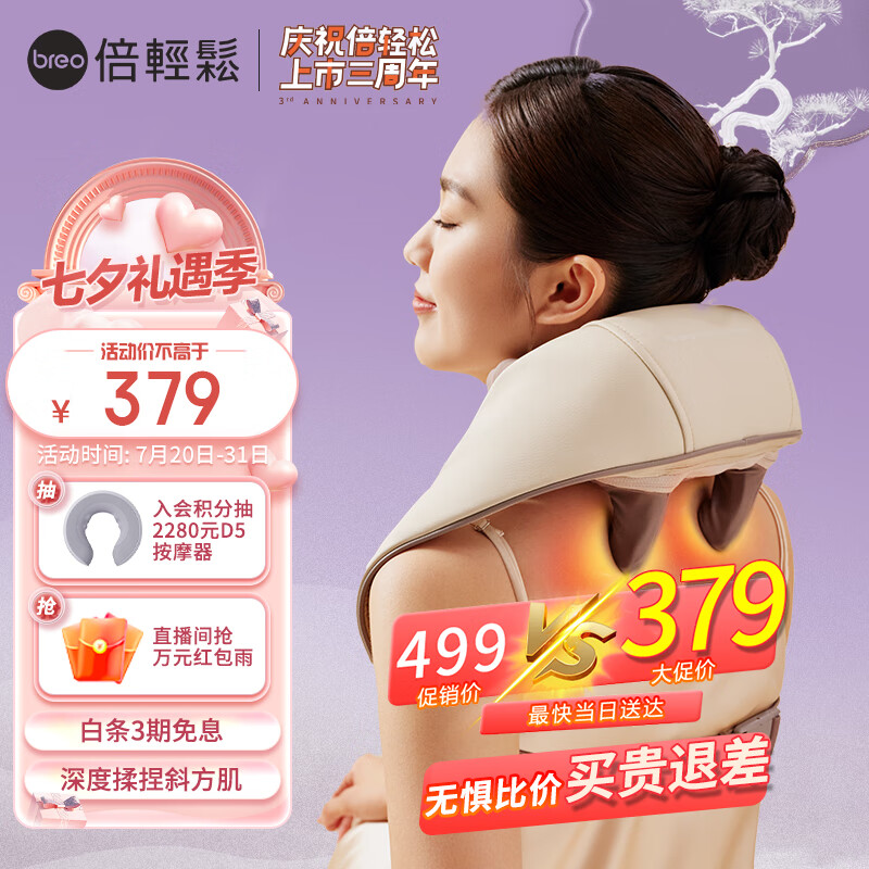 倍轻松(breo)N5mini颈椎按摩器按摩披肩肩颈按摩器肩膀斜方肌腿腰颈部按摩仪器脖子 送男女友七夕情人节礼物价格:419.00元!