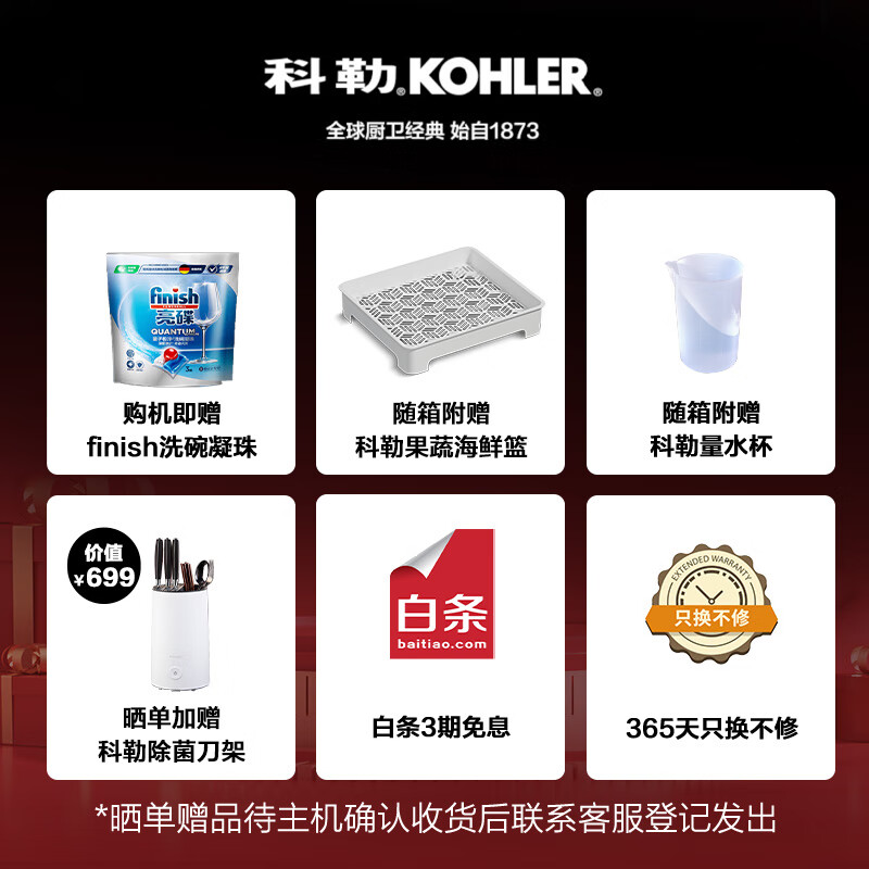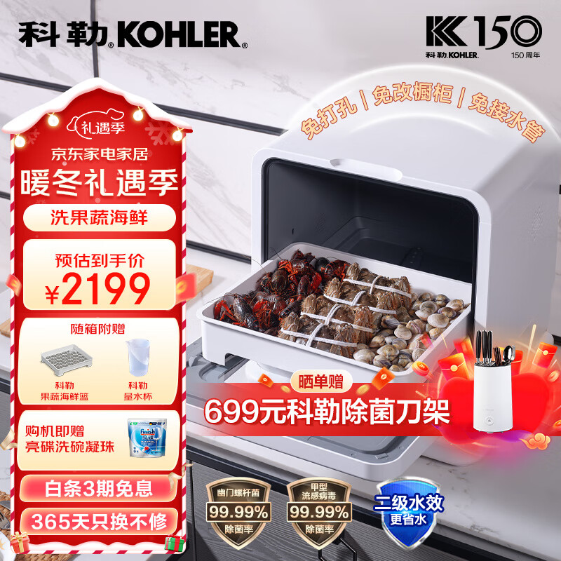 科勒(KOHLER)台式洗碗机39844T-NA 家用易安装刷碗机 软化水系统 高温除菌 UV存储 洗烘一体 洗果蔬海鲜价格:2199.00元!